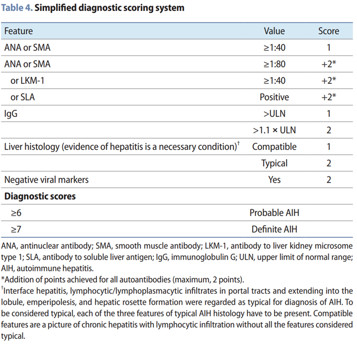 [그림 3] 간소화된 자가면역간염 진단 점수 체계