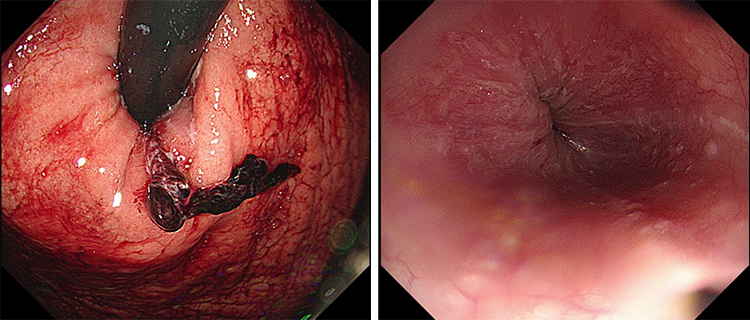[그림 2] 내시경적 지혈술을 시행한 후의 사진
