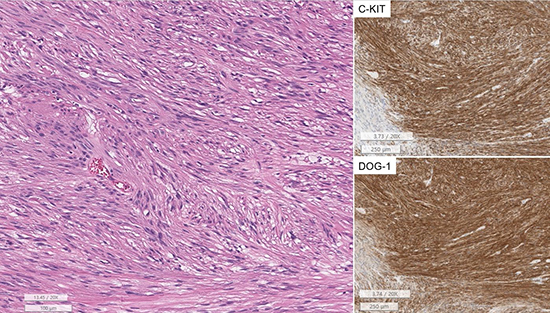 10) Immunohistochemistry: C-kit(+), CD34(+), DOG-1(+), S-100(-)
