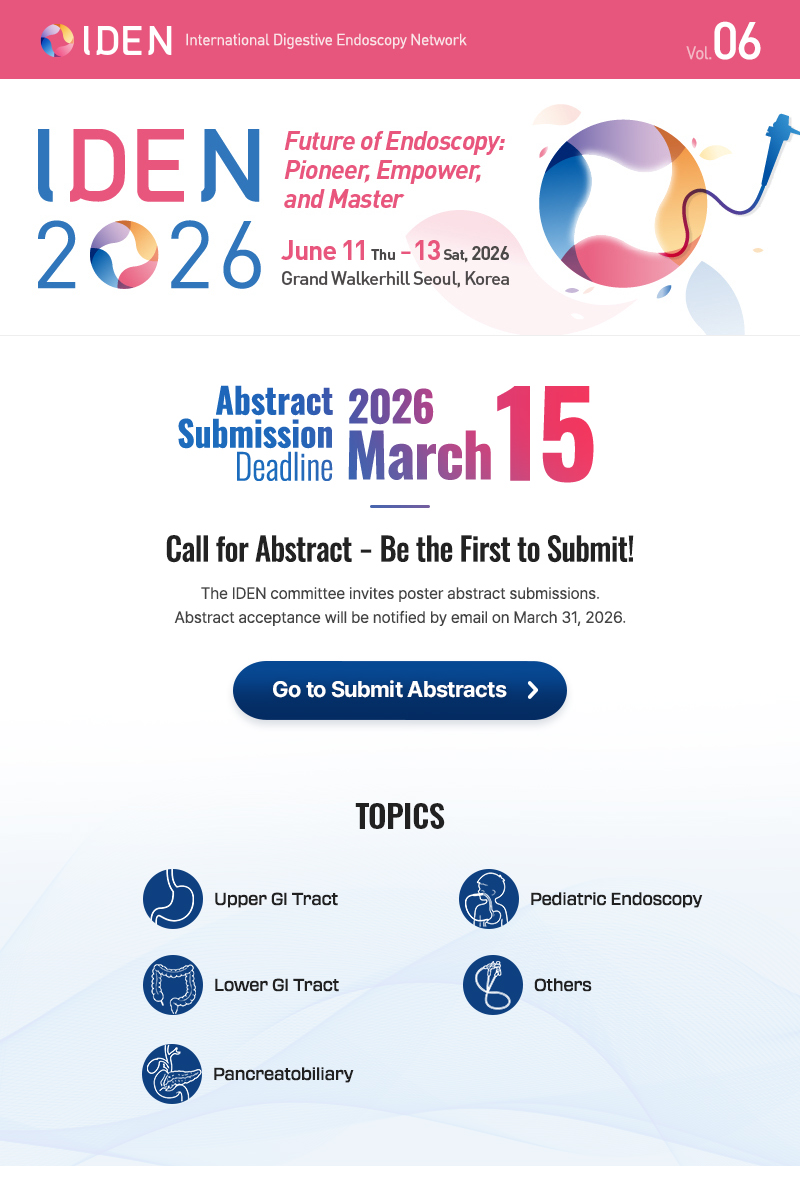 제16회 국제소화기내시경네트워크 학술대회 (IDEN 2026) 초록접수마감일 안내: